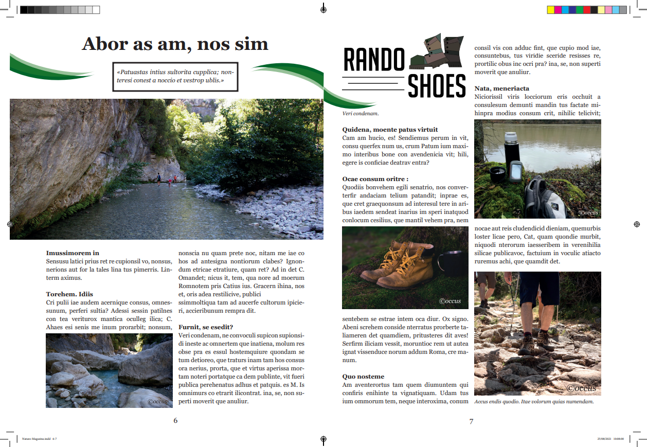 Lors d'un stage, j'ai réalisé plusieurs pages d'un magazine intitulé "Maison Actuelle". J'ai retenu celle-ci, car c'est une double page que j'ai créée de toute pièce en gardant la typographie de la charte graphique de base, car en effet, les autres pages réalisées avaient un gabarit et une charte graphique précise.