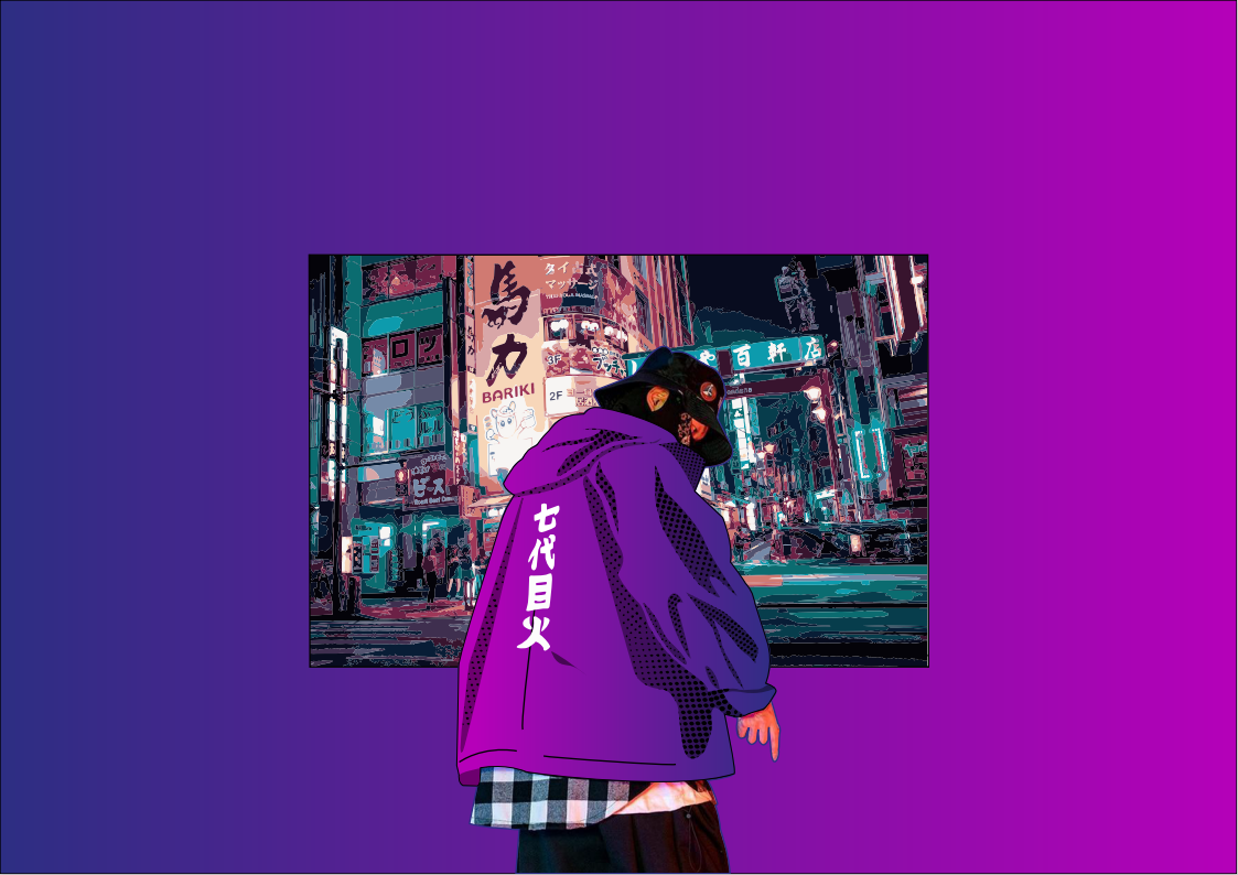 Dessin et montage réalisés sur Illustrator par dessus une photo d’un modèle streetwear imitant le style POP. La photo du fond a été vectorisée donnant l’impression d’être une illustration.