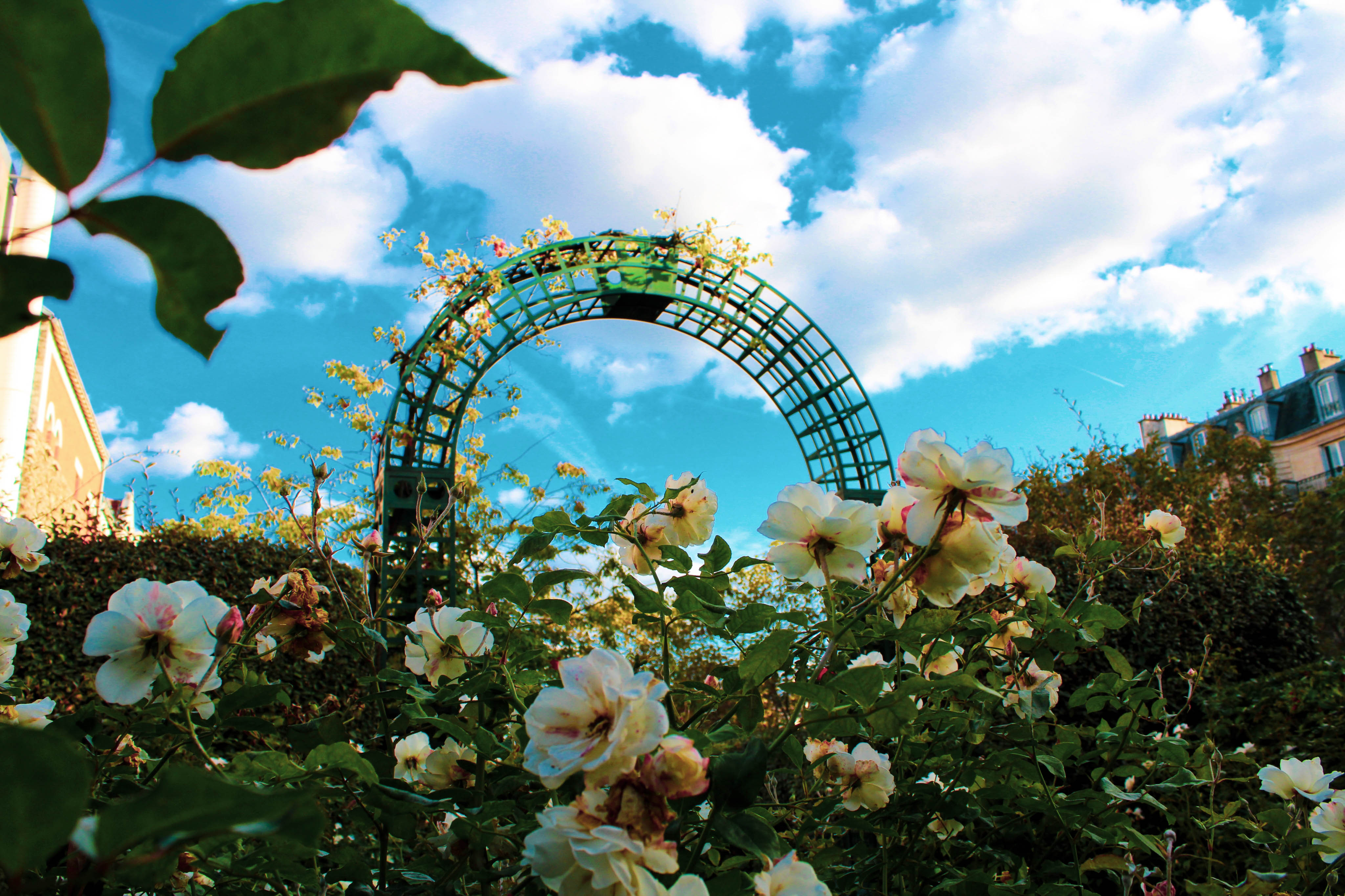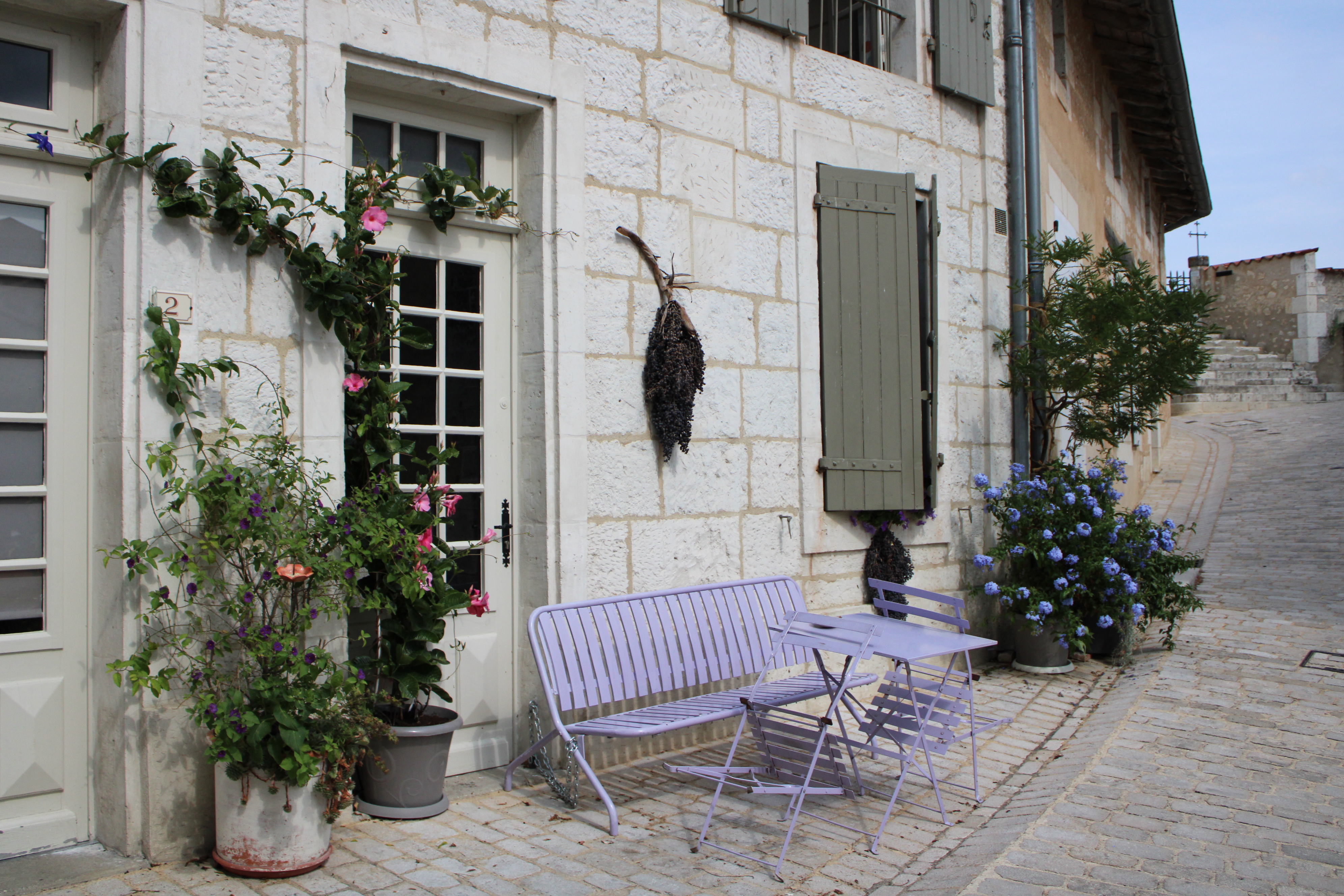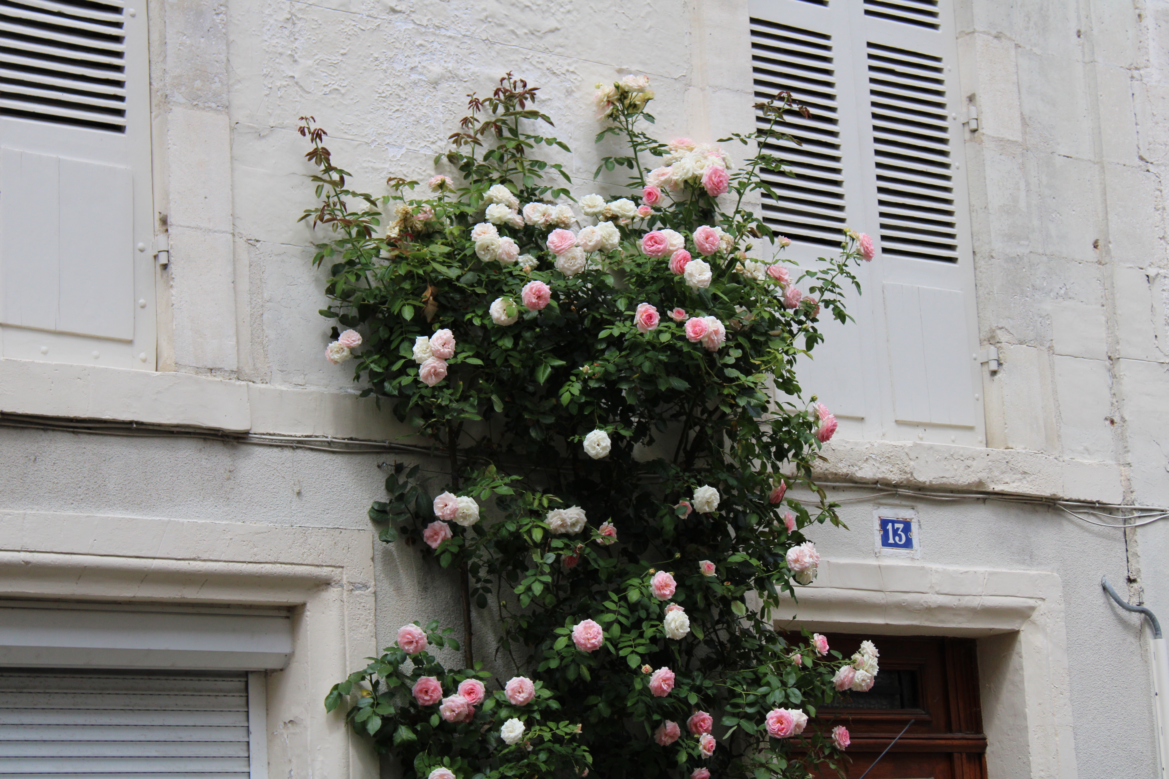 Photographie prise avec un Canon 2000D d'une facade fleurie originel avec un plan en profondeur.