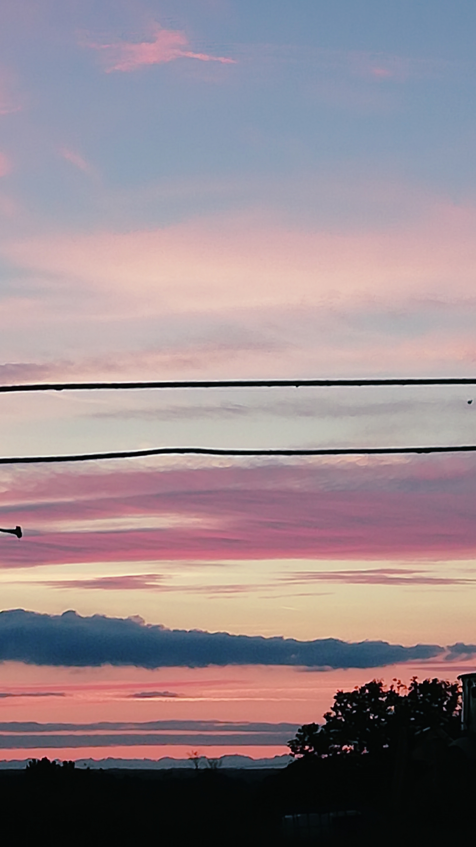 Photographie prise avec un téléphone portable d'un couché de soleil rosé.
