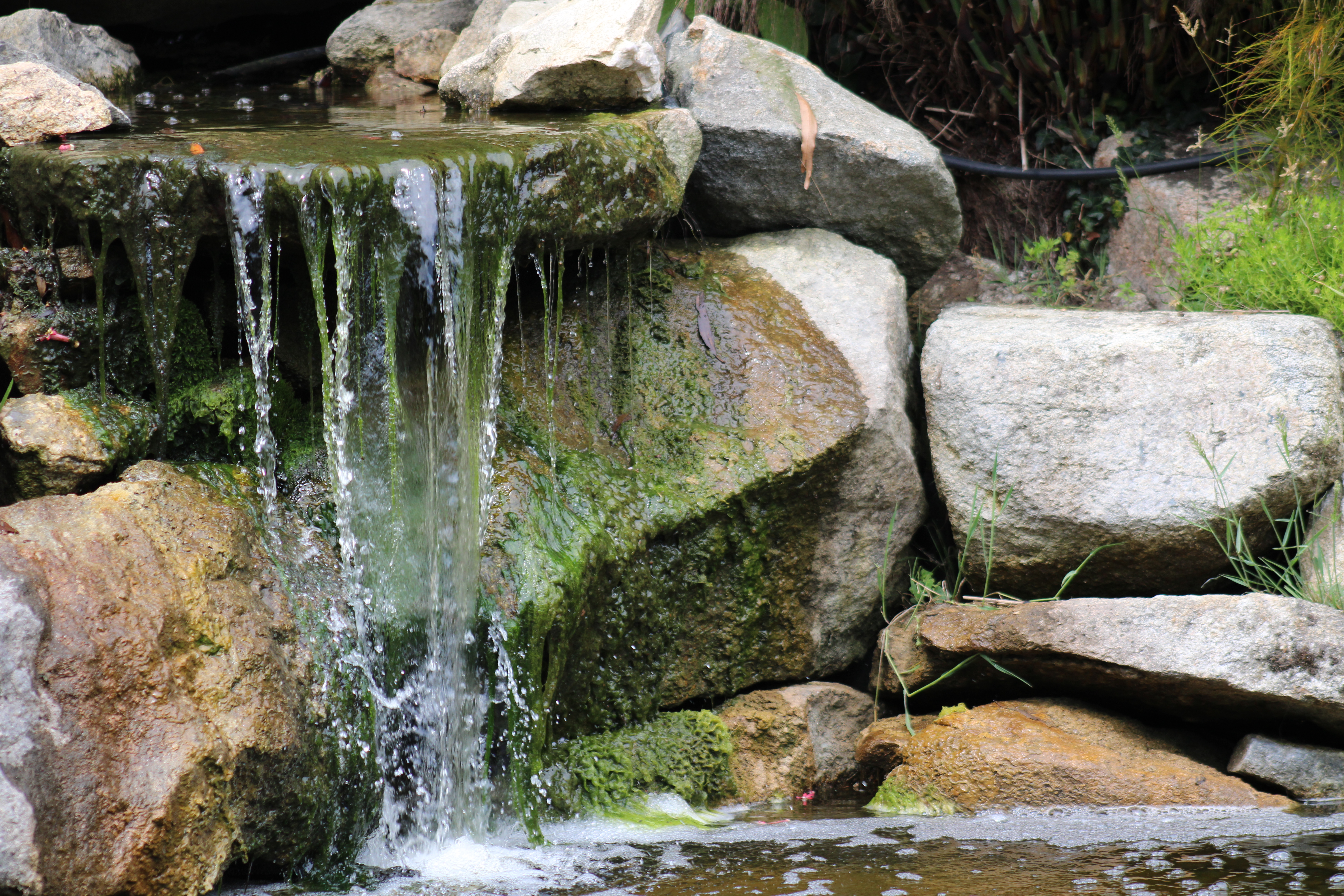 Photographie originel prise avec un Canon 2000D d'une petite cascade dans un étang.