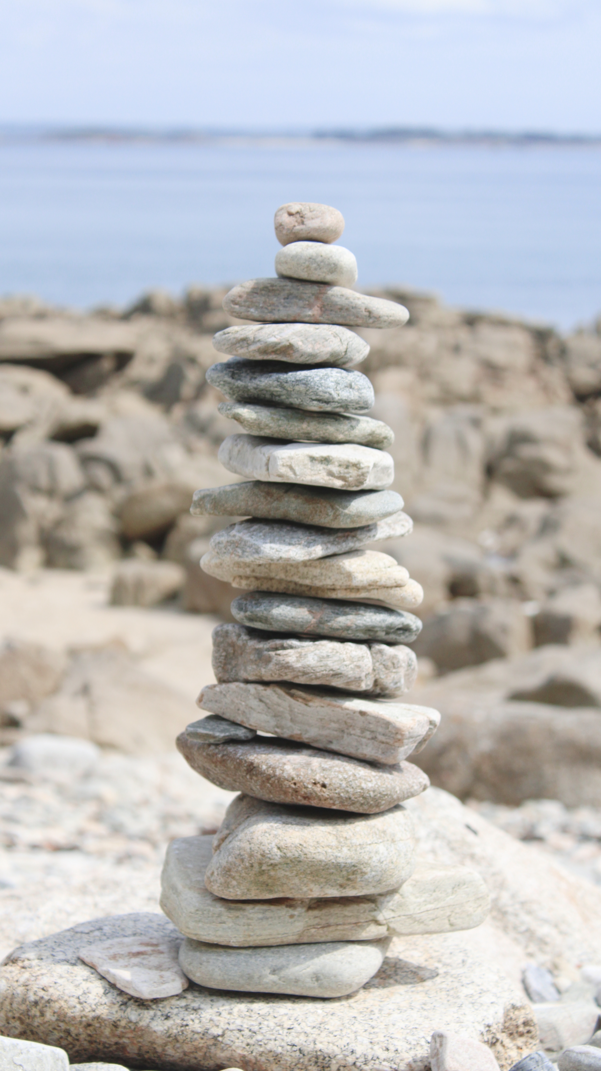 Photographie, prise avec un Canon 2000D d'une sculpture de pierre en équilibre appeler "stone balance", originel, sans retouche.