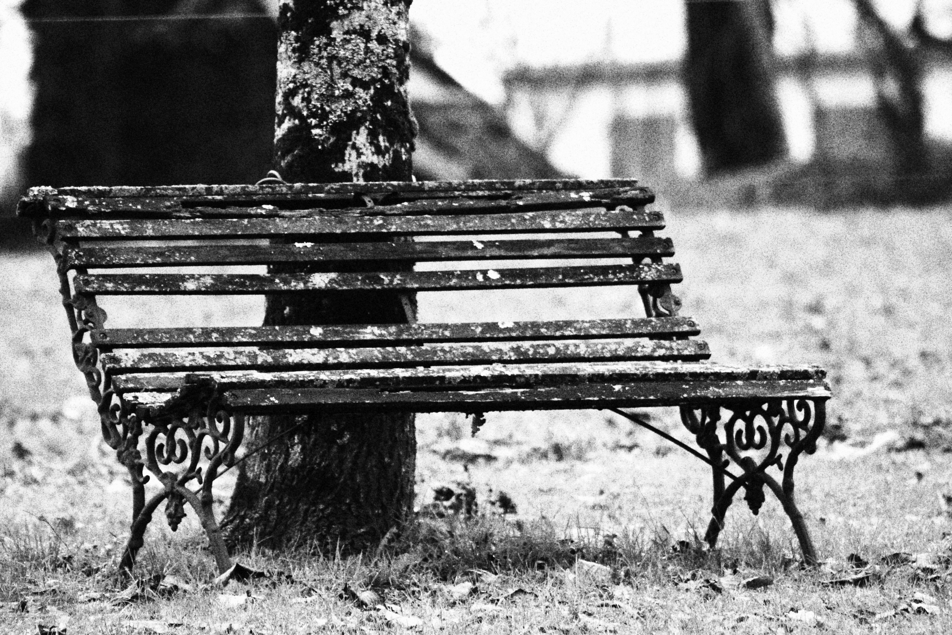 Photographie argentique modifié sur Lightroom d'un vieux banc.