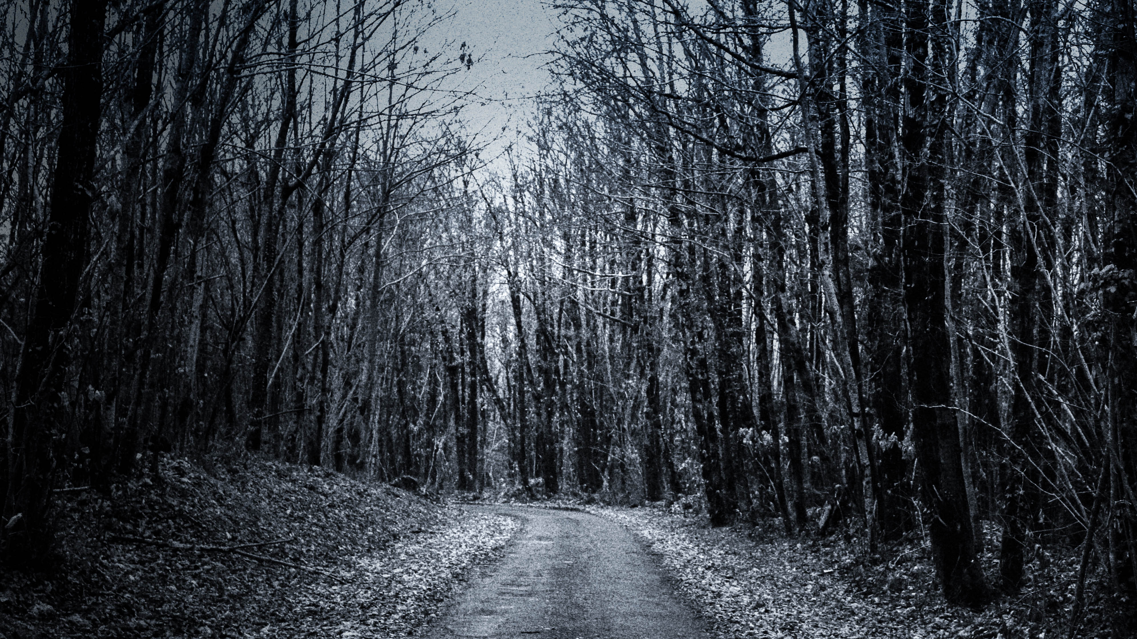 Photographie argentique modifié sur Lightroom d'un chemin sombre.