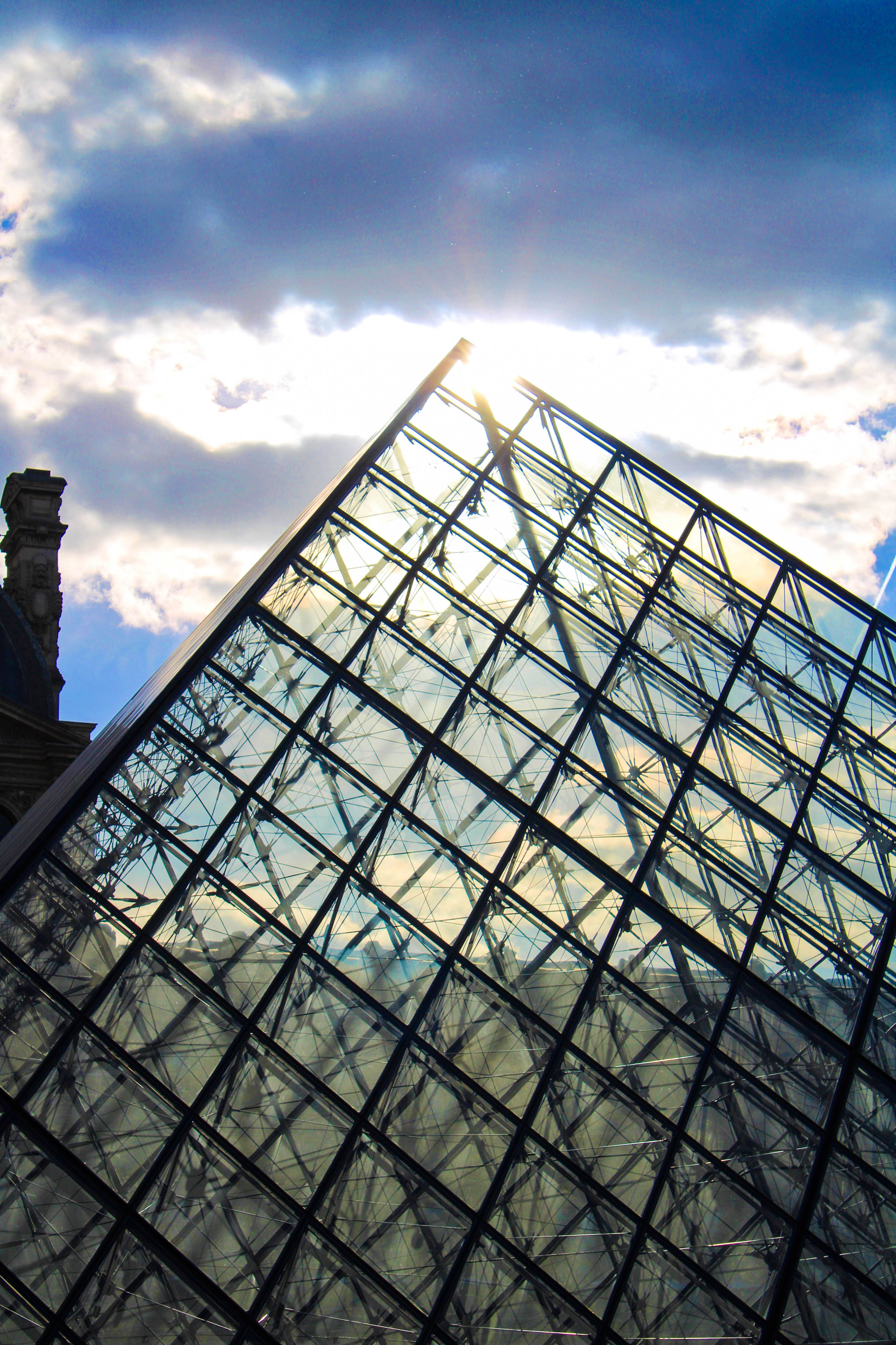 Photographie modifié sur Lightroom de la pyramide du Louvre à Paris.